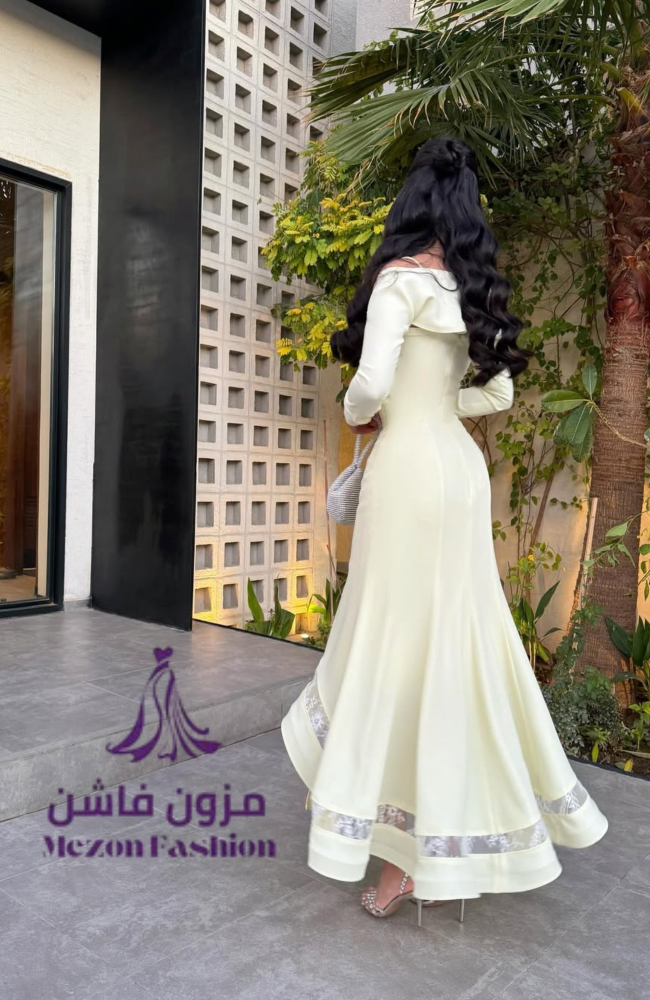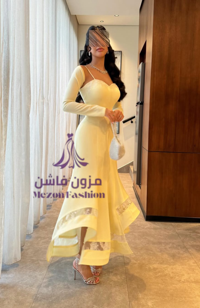 استقبلي مناسباتك بأناقة لافتة مع هذا الفستان الساحر من مزون فاشن. يتميز التصميم بقصة علوية مبتكرة تجمع بين الأكمام الطويلة الراقية وحمالات الكتف الرفيعة بفتحة صدر أنيقة. الفستان مصنوع من قماش الكريب الفاخر الذي يحدد القوام بجمال، وينساب لأسفل بتنورة كلوش واسعة مزينة بتفاصيل من الدانتيل المفرغ عند الأطراف، مما يضفي لمسة من العصرية والرقي.